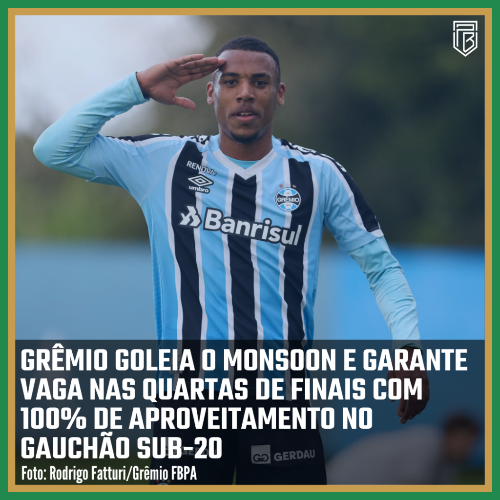 GRÊMIO GOLEIA O MONSOON E GARANTE VAGA NAS QUARTAS DE FINAIS COM 100% DE APROVEITAMENTO NO GAUCHÃO SUB-20