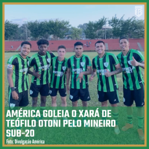 Em partida disputada na tarde deste sábado (27/05), o AMÉRICA goleou o AMÉRICA DE TEÓFILO OTONI por 6 a 0, confronto válido pela 4ª rodada do Campeonato Mineiro Sub-20, no Estádio Municipal de Ibirité.