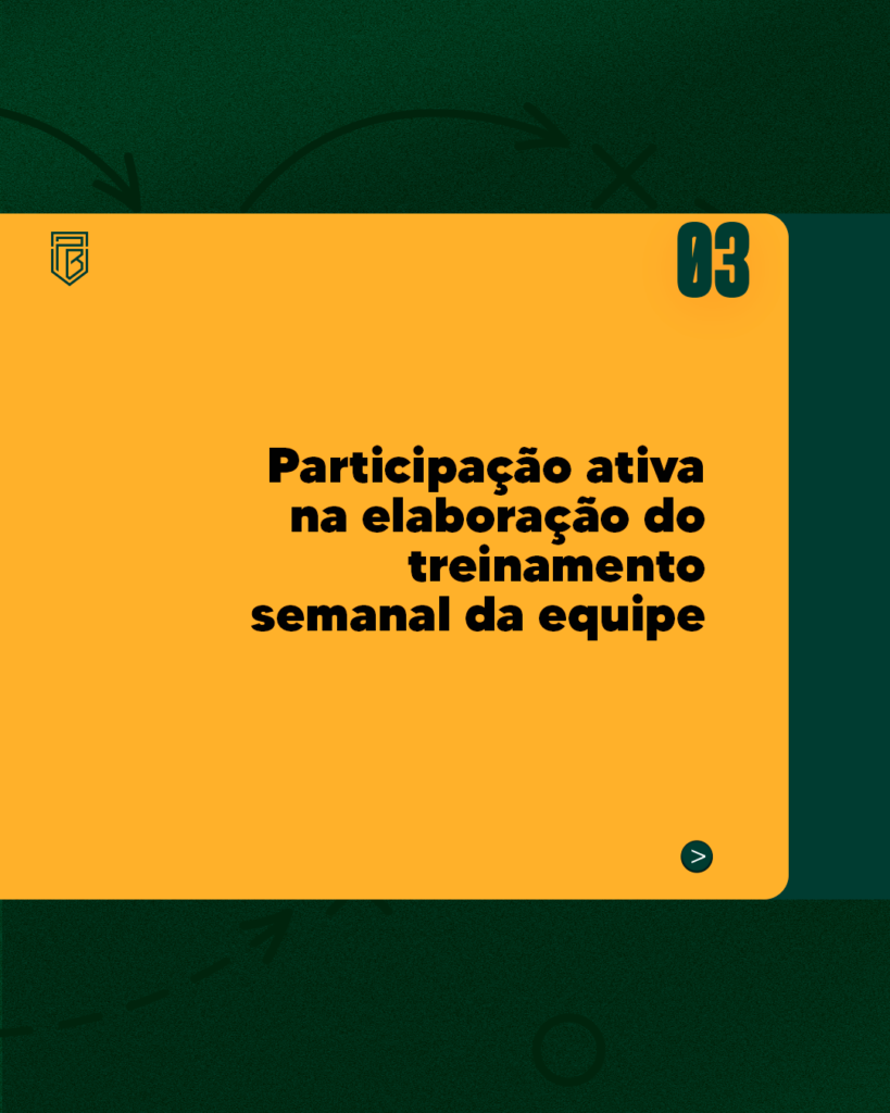 3- Responsável pela elaboração e realização das bolas paradas defensivas e ofensivas da equipe.