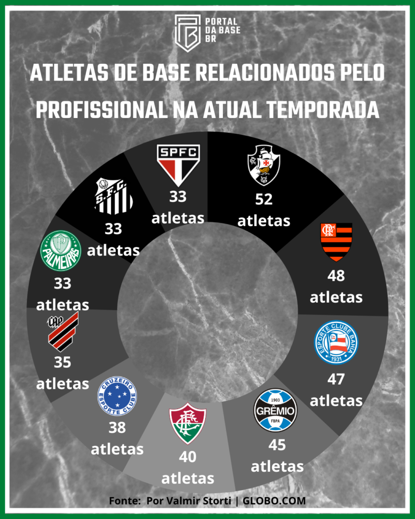 A globo.com através da sua equipe do Espião Estatístico, realizou levantamento dos atletas relacionados pelas equipes profissionais advindos da própria base dos próprios ou em clubes concorrentes da série A.