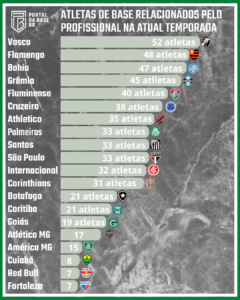 A globo.com através da sua equipe do Espião Estatístico, realizou levantamento dos atletas relacionados pelas equipes profissionais advindos da própria base dos próprios ou em clubes concorrentes da série A.