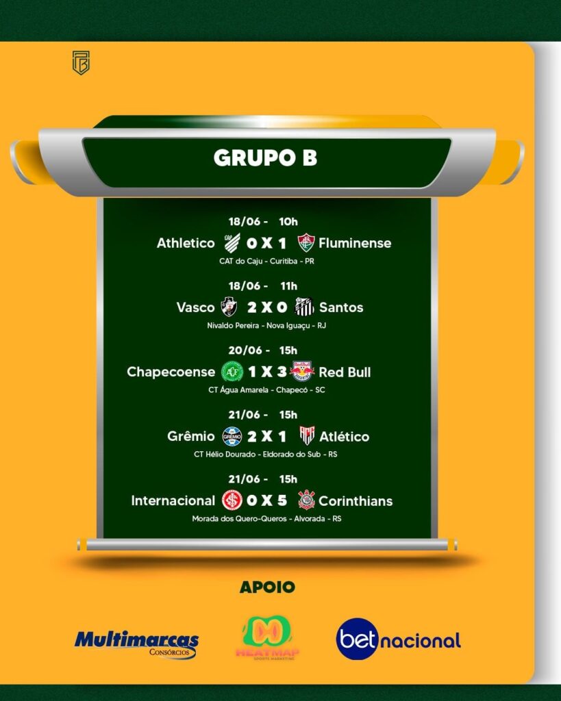 As equipes do FLAMENGO, comandado por MARIO JORGE, no grupo A, do VASCO, comandado por IGOR GUERRA e do GRÊMIO, comandado por LUÍS EDUARDO, no grupo B, são as equipes com 100% de aproveitamento na competição.