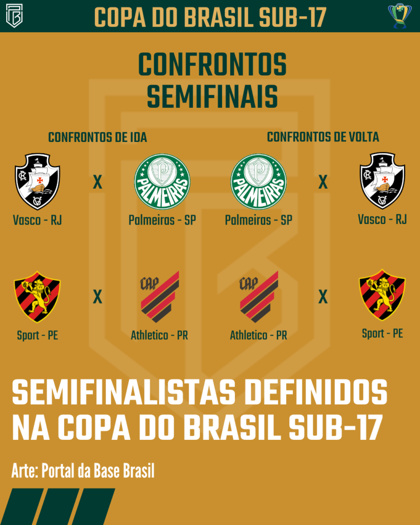 PALMEIRAS vs VASCO e ATHLETICO vs SPORT fazem as semifinais da Copa do Brasil Sub-17.